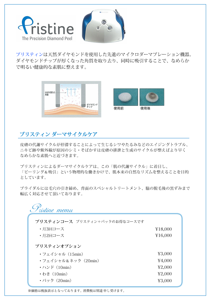 プリスティンメニュー